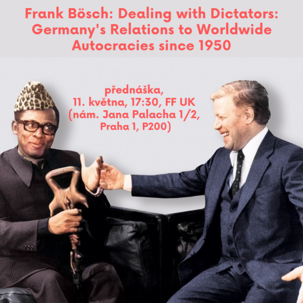 We cordially invite you to a lecture by German historian Frank Bösch titled “Dealing with Dictators: Germany’s Relations to Worldwide Autocracies since 1950,” which will take place on May 11 at 5:30 p.m. at the Faculty of Arts, Charles University (nám. Jana Palacha 1/2, Prague 1, Room P200).